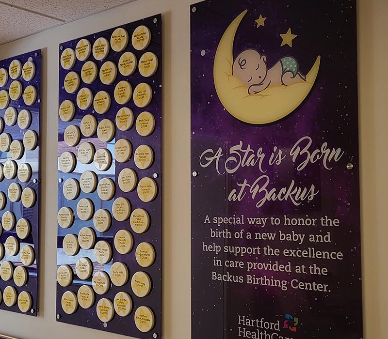 To recognize this membership, his/her name and birth date will be etched on an individual star and placed on A STAR IS BORN AT BACKUS wall of honor, proudly displayed near the Birthing Center.